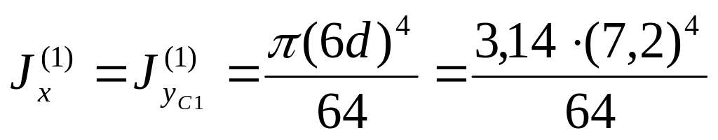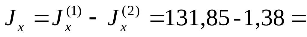 Рассматриваем моменты инерции заштрихованного сечения относительно оси Х как разность моментов инерции круга и прямоугольника