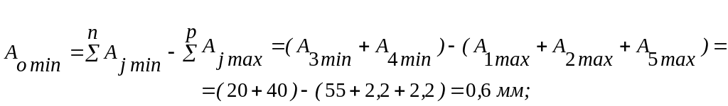Определяем значения верхнего и нижнего отклонений звена замыкающего (исходного) А0: