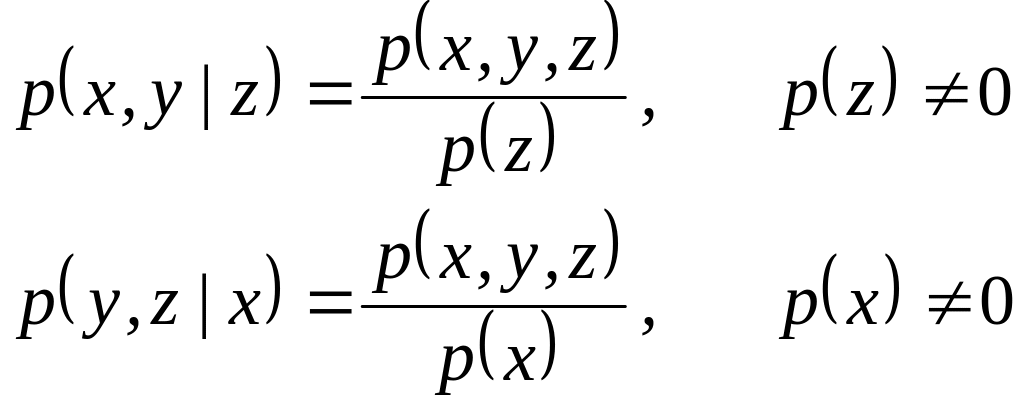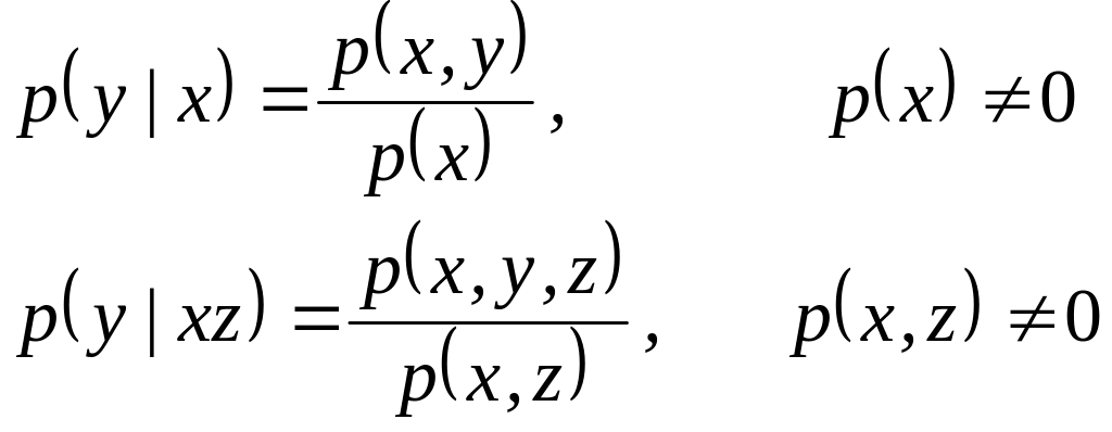 — безусловные распределения вероятностей на парах (х,у)XY, (у, z)YZ, (x, z)XZ соответственно и