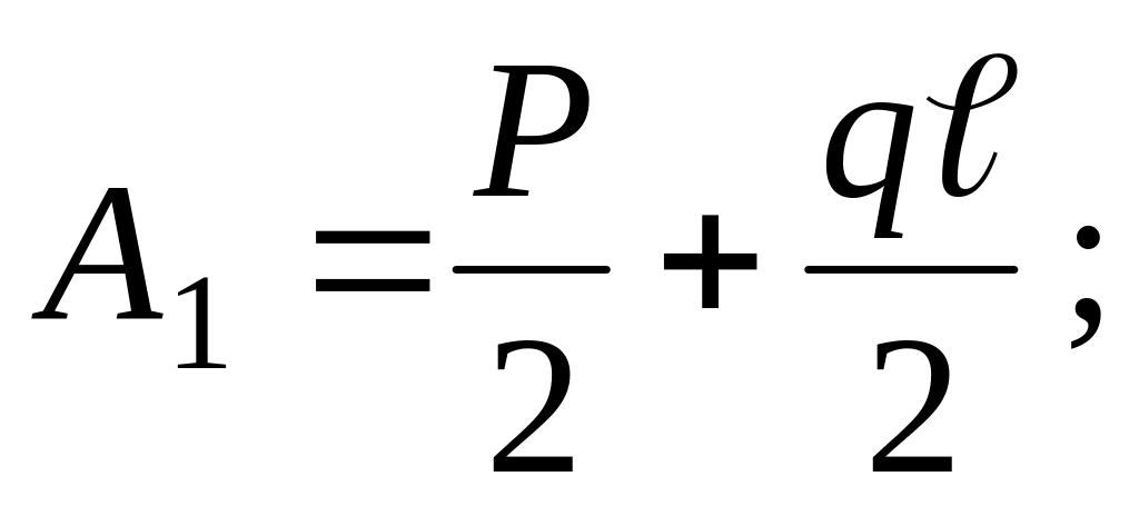 Будем искать решение для простой шарнирно опертой составной балки пролетом ℓ, которая нагружена сосредоточенной силой P, приложенной в середине пролета, и равномерно распределенной по всей длине суммарной нагрузкой q=q1+q2. Функция изгибающего момента M для левой части данной балки является степенным рядом