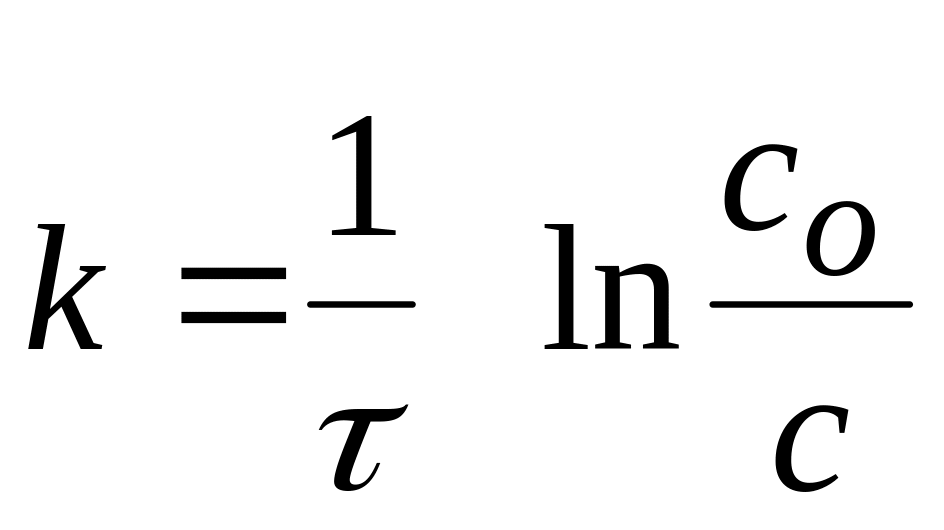 Исходная концентрация этилацетата сo эквивалентна объему щелочи (Vк – Vo), а концентрация в момент времени τ эквивалентна (Vк – Vτ). Отсюда константу скорости можно рассчитать по уравнению