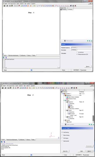 Рис. 2. Окна модуля «Forming»: а) начальное окно пре-процессора б) диалог выбора типа операции