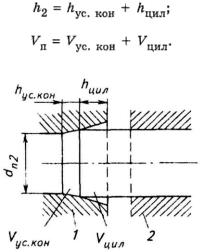 1 — в пуансоне (V расч = Vyc.кон, где Vрасч — расчетный объем рабочей части пуансона; V ус.кон — объем усеченного