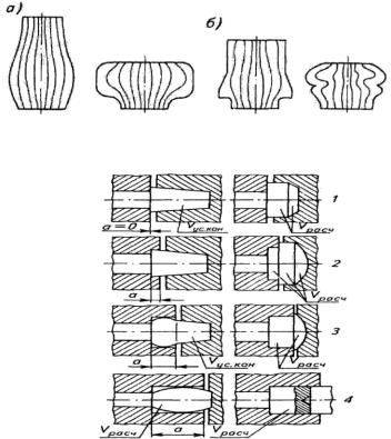 Рис. 3.63. Искажение конической формы заготовки при предварительной высадке.