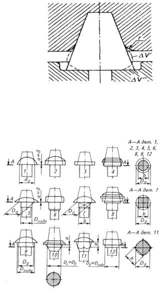 При выборе типа предварительного пуансона (пуансоназаталкивателя или конического пуансона) необходимо прежде всего определить отношение длины осаживаемой части заготовки к ее диаметру