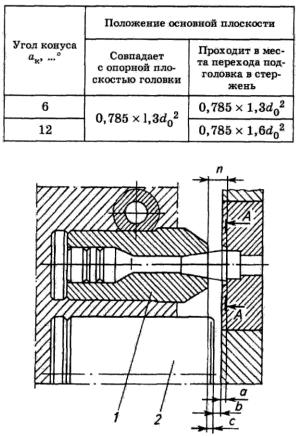 Плоскость АА (рис. 3.64), разделяющая объем деформируемой заготовки на стержень и высаживаемую головку, называется основной.