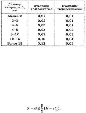 Диаметр dkl меньшего основания конического ручья пуансона следует выбирать равным или несколько меньше минимального диаметра металла d0 min в зависимости от номинального диаметра подаваемой проволоки или прутка d0 и материала пуансона (табл. 3.39).