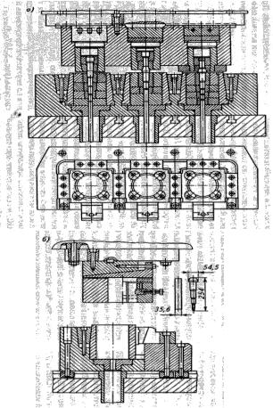 дополнительных ступеней на хвостовой части и окончательную высадку головки. Штамп имеет следующие конструктивные особенности: отсутствие направляющих колонок и втулок; крепление матричных вставок с помощью прямоугольных обойм с наклонными сторонами и клиньев.