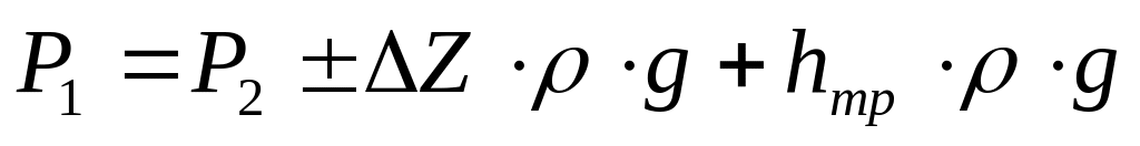 Давление Р1 в начале трубопровода при полном заполнении его жидкостью определяется по формуле