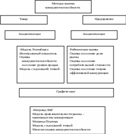 В зависимости от того, что выбрано в качестве объекта анализа – конкурентоспособность предприятия или выпускаемой продукции, возможна комбинация методов оценки, отраженных на рисунке. Выбор целевого критерия (показателя) конкурентоспособности происходит в рамках методологии повышения конкурентоспособности предприятия и управления конкурентоспособностью продукции.