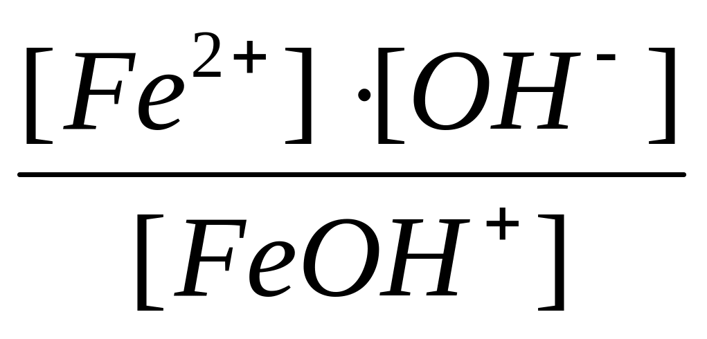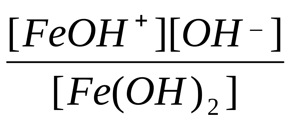 Аналогичные соотношения характеризуют и ступенчатую диссоциацию оснований многовалентных металлов. Например, двум ступеням диссоциации гидроксида железа (II)