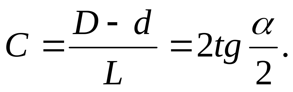 Конусность С—отношение разности диаметров большого и малого основания к длине конуса, т.е.