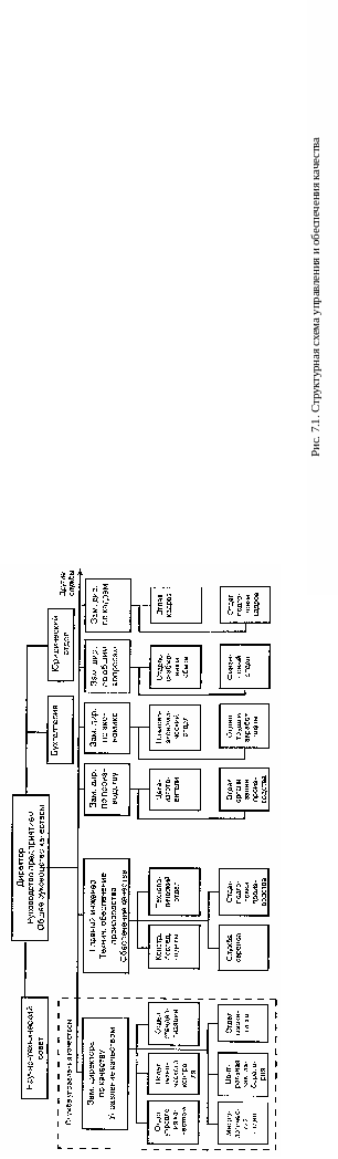 Для примера подобная структурная схема приведена на рис. 7.1. Дополнительно на схеме целесообразно указать основные функции представленных подразделений. Состав подразделений и выполняемые ими функции будут конечно разными на разных предприятиях, но в совокупности они должны охватывать весь объем работ, потребный для обеспечения качества выпускаемой продукции.