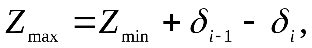 Затем рассчитываются минимальные припуски Zmin на обработку по всем технологическим переходам и их результаты заносятся в соответствующую графу расчетной таблицы. Для последнего перехода в графу "Расчетный размер" записывается наименьший (для вала) или наибольший (для отверстия) размер обрабатываемой поверхности по чертежу детали.