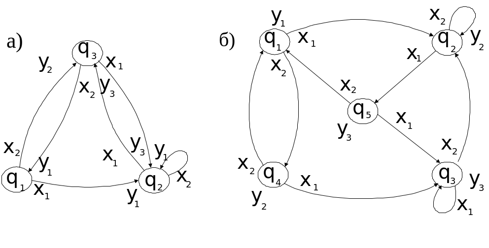 Рис. 4.6 Графы автомата для автоматов S1 (а) и S2 (б)