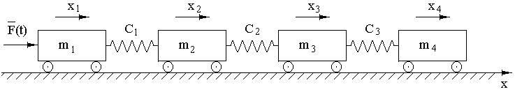 Очевидно, что каждое уравнение данной системы вытекает из второго закона Ньютона, записанного для каждого из четырех движущихся тел. Система, изображенная на рис. 4, является механическим аналогом электрической системы, приведенной на рис. 4.