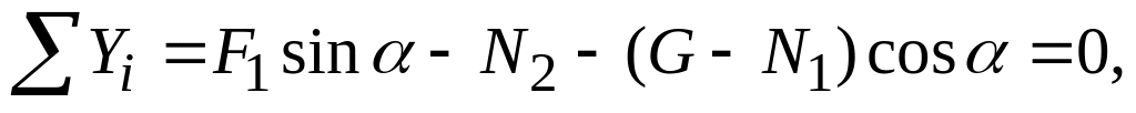 Неизвестными являются нормальные реакции N1, N2 и угол . Составим три уравнения равновесия:
