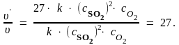 Таким образом, при увеличении концентрации SO2 в 2 раза скорость реакции возросла в 4 раза;