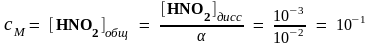 HNO2 H+ + NO2‾, следует, что [H+] = [HNO2]диссоц = 10‾3. Из выражения