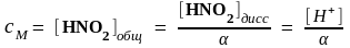 α = [HNO2]диссоц / [HNO2]общ следует: