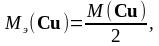Молярная масса эквивалента меди равна молярной массе меди, деленной на число электронов, участвующих в процессе восстановления: