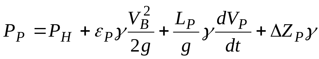 При обратном ходе также пренебрегаем скоростным напором и напором положения возвратных цилиндров.