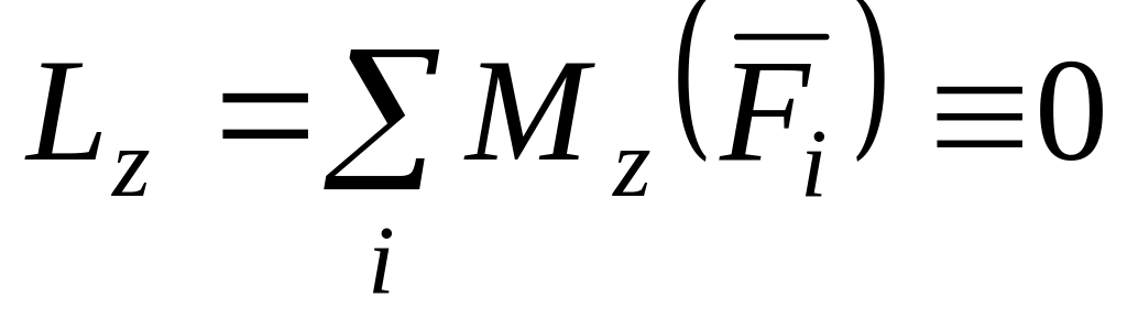 Проекция главного момента на ось равна нулю, так как каждая сила параллельна этой оси.