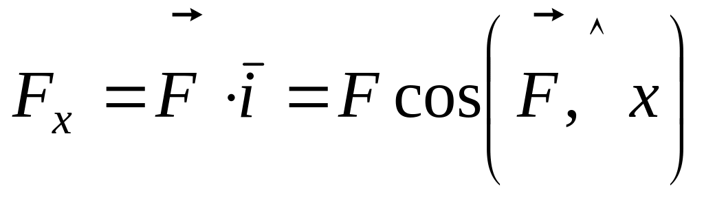 Если дана сила , то ее проекции на прямоугольные оси координат вычисляются по формулам: