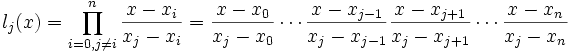 Отсюда следует, что L(x), как линейная комбинация lj(x), может иметь степень не больше n, и L(xj) = yj, для случая равномерного распределения по отрезку узлов интерполяции.