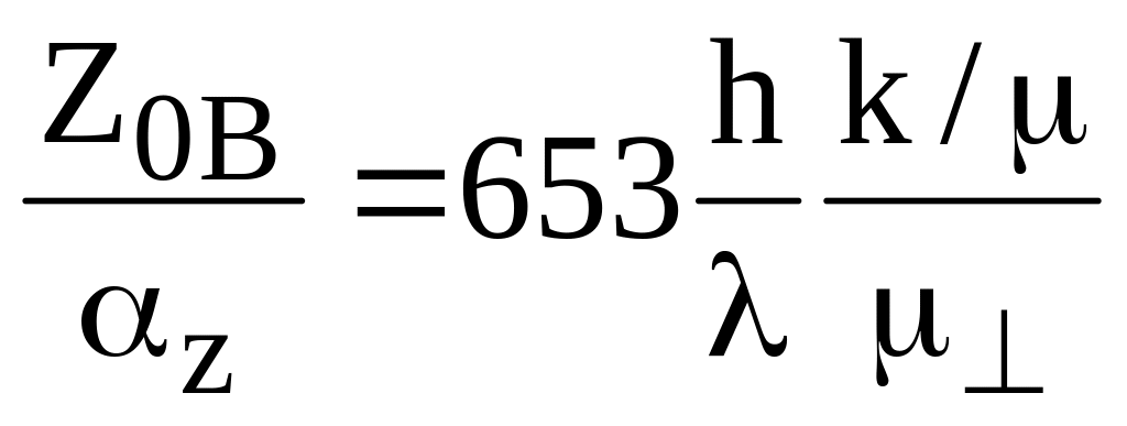 Коэффициент затухания распространяющейся волны αz определяется по формуле
