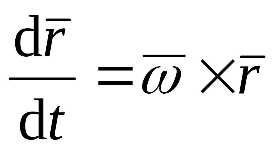 В этой формуле вектор имеет постоянный модуль, так как соединяет все время две точки твердого тела. Вектор , являясь угловой скоростью вращения твердого тела вокруг неподвижной оси, выполняет также роль угловой скорости вращения вектора , жестко скрепленного с телом.