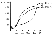 Энергия дефектов упаковки при легировании чаще всего снижается. Это снижение не зависит от величины поверхностной энергии легирующего элемента γлэ (как например, на рис. 8.1), а определяется разницей в валентности матрицы и легирующего элемента (прямо пропорционально этой разнице). Это приводит к повышению коэффициента упрочнения на третьей стадии и облегчает деформацию двойникованием как у весьма пластичных материалов (например, медных сплавов), так и, что важно, у типично хладноломких материалов (W, Mo, Cr), для повышения пластичности двойникованием которых вводят Re.