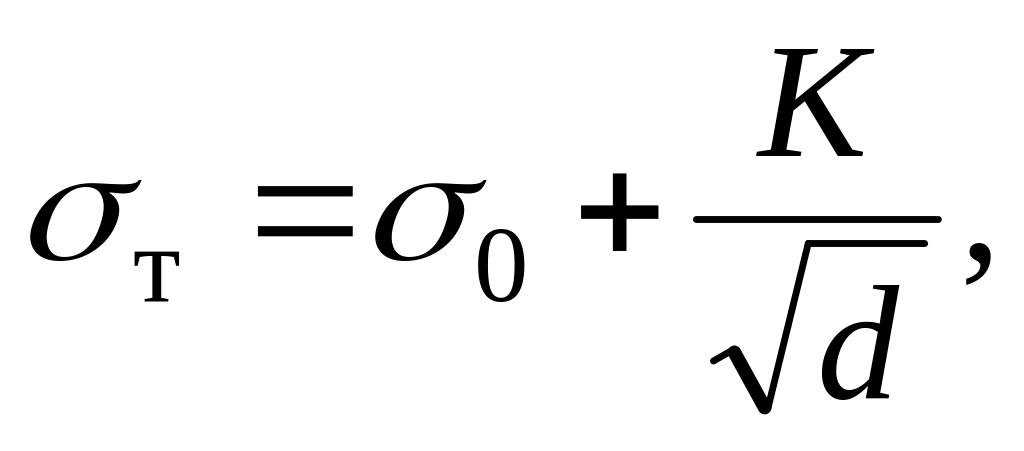 где σт – предел текучести, σ0 – напряжение движения свободной дислокации (МПа), K – коэффициент, характеризующий прочность блокирования дислокаций, d – диаметр зерна (мм). В результате трещина при движении чаще будет менять направление;