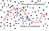Но на самом деле дислокация изогнута и огибает места максимальных искажений с радиусом, равным
