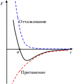 Рис. 4.1. Сила межатомного взаимодействия F, в зависимости от расстояния между атомами r
