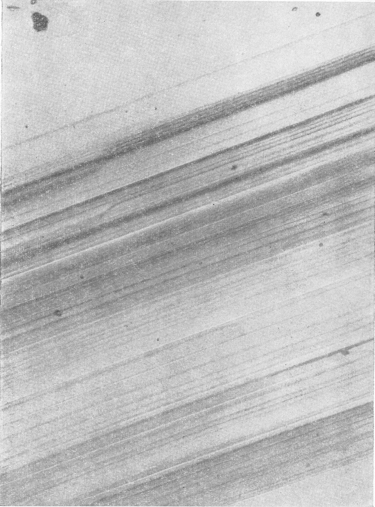 Монокристаллы ГПУ металлов с соотношением не могут деформироваться на большую степень из-за наличия только одной плоскости двойникования. Металлографически на поверхности шлифа двойники выглядят как двойные параллельные полосы, заканчивающиеся в поликристалле внутри зерна, в соответствии с рис. 5.7.