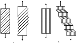 Рис. 5.1. Пластическая деформация. а) скольжением, б) двойникованием
