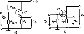 Типовые схемы эмиттерного и истокового повторителей приведены соответственно на рис. 2.3.14, а,б.