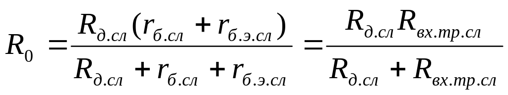 R0 — активная составляющая сопротивления цепи вправо от разделительного конденсатора С; на эквивалентной схеме для нижних частот R0 представляет собой сопротивление заменяемой цепи между точками А и В рис. 2.4.3. Из рисунков видно, что для транзисторного резисторного каскада: