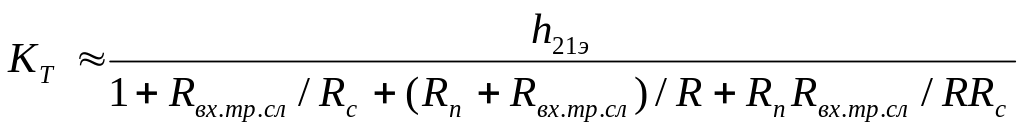 где h21э — статический коэффициент передачи тока транзистора рассчитываемого каскада, а Rвх.тр.сл — входное сопротивление транзистора следующего каскада при включении с общим эмиттером.