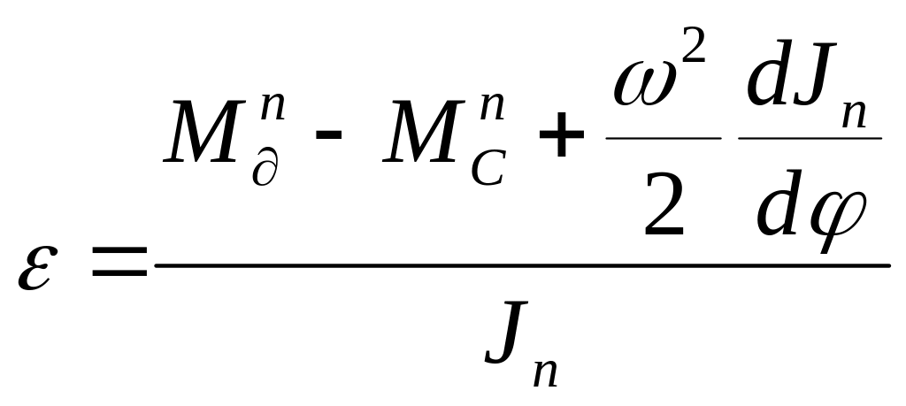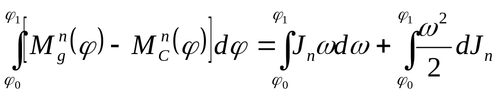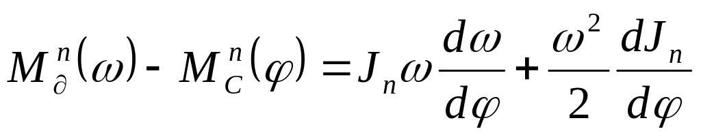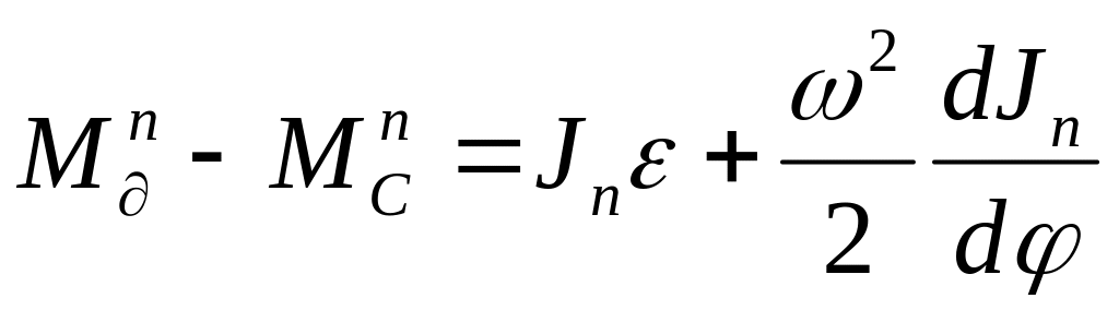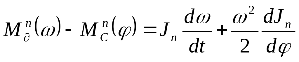 Это уравнение можно применять и для вращающего звена, имея в виду, что V=, Mn=Pnr, Jn=mnr2 . Моменты сил движущих и сил сопротивления, входящие в правую часть уравнения, могут быть функциями обобщенной координаты (положения), скорости и времени.