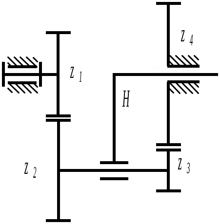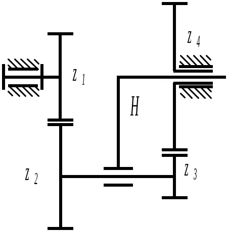 из которой следует, что дифференциальный механизм не имеет определенного передаточного отношения, если одно входное звено имеет определенную угловую скорость. Только при заданной угловой скорости двух входных звеньев (например, 1 и Н) передаточное отношение становится определенным.