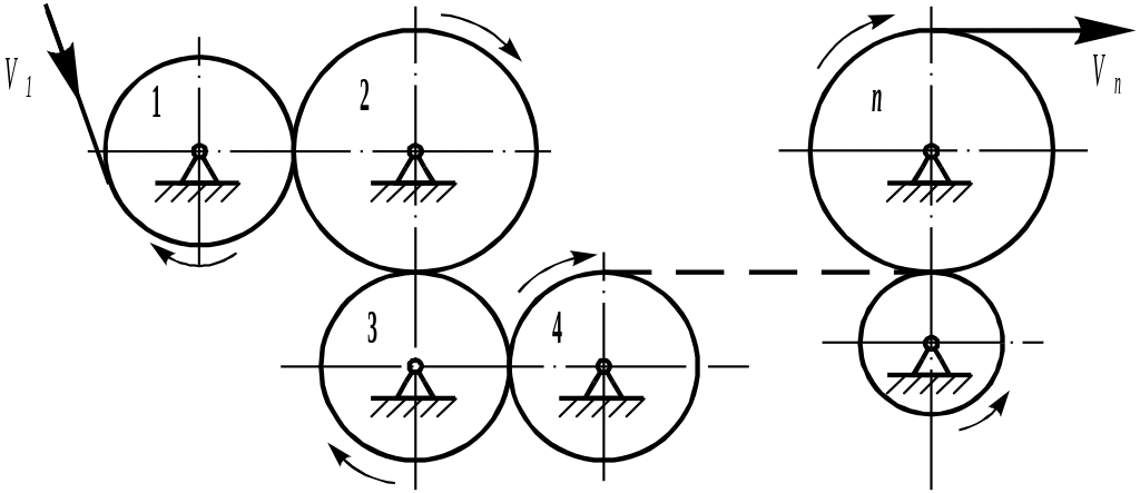Такой ряд колес применяется для передачи движения между валами, находящимися на большом удалении друг от друга или при необходимости воспроизведения передаточного отношения определенного знака.