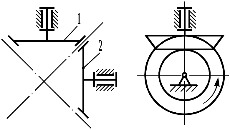 Рис. 5.110. Трехзвенная зубчатая передача с коническими колесами