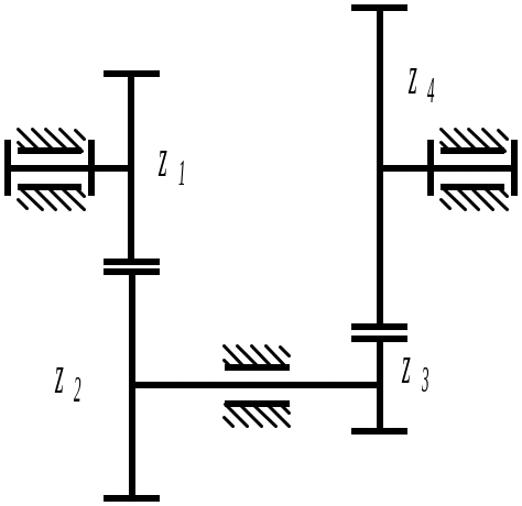 Рис. 5.108 .Трехзвенная зубчатая передача с внешним зацеплением