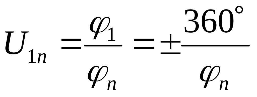 Знак плюс ставится, если колеса вращаются в одном направлении (внутреннее зацепление), в противном случае – минус (внешнее зацепление).