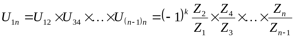 Для механизмов, имеющих кроме ведомого и ведущего еще несколько промежуточных колес (Рис. 5 .112), передаточное отношение от ведущего (первого) к ведомому (n-му) колесу определяется формулой