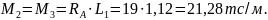 Максимальный изгибающий момент равен 𝑀макс = 21,28 тс/м < [𝑀]и, где [𝑀]и − максимально допустимый момент (Таблица 15) [1, гл.1, п.6.5.1]. Таким образом, данная схема размещения грузов (рисунок А.4, Приложение А) допустима к использованию.