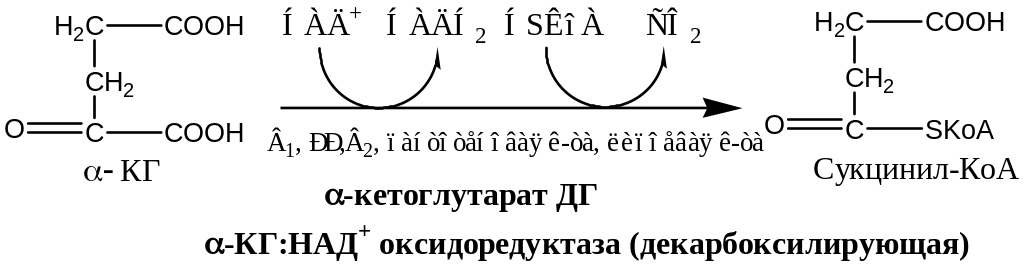 α-КГ ДГ активируется Са2+, ингибируется сукцинил-КоА, АТФ, НАДН2.