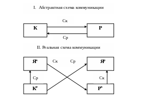 В случае межличностного общения возникает следующая ситуация: коммуникант говорит в качестве Як, обращаясь к Рк, реципиент отвечает ему как Яр и адресуется при этом к Кр(см. рис. 4.4). Ск и Ср — сообщения, которыми обмениваются К и Р.